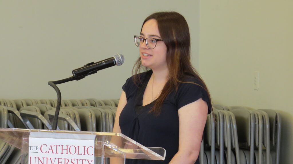 After the presentations, the around forty attendees participated in breakout sessions to discuss a variety of topics, including postgraduate options for students interested in a career related to sustainability, campus sustainability programs, and other topics. The attendees also participated in a sustainability tour of Catholic University’s campus provided by the Environmental Club and CUA Campus Sustainability Office director Gabrielle Choat.